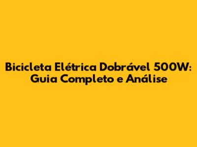 Bicicleta Elétrica Dobrável 500W: Guia Completo E Análise
