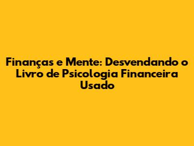 Psicologia financeira livro usado – já pensou em como a mente influencia suas finanças? Se você está buscando entender melhor suas decisões financeiras, um livro de psicologia financeira usado pode ser uma mina de ouro. A psicologia financeira une os princípios da psicologia e da economia comportamental para nos ajudar a entender como pensamos, sentimos e agimos em relação ao dinheiro. E, acredite, essa é uma jornada fascinante! Ao comprar um livro usado, você não apenas economiza, mas também tem acesso a conhecimento valioso que pode transformar sua vida financeira. Mas, como começar? Quais livros são os melhores? E como aplicar esses conhecimentos no dia a dia? Vamos mergulhar nesse universo e desvendar todos os segredos da psicologia financeira.