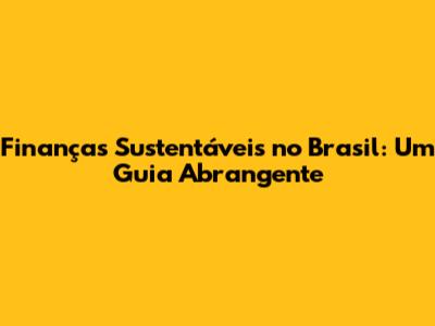 Finanças Sustentáveis No Brasil: Guia Completo