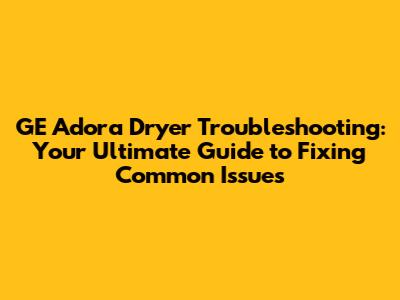 GE Adora Dryer Problems? Quick Troubleshooting Guide