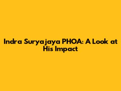 Hey everyone, let's dive deep into the world of Indra Suryajaya PHOA, a name that's been buzzing in various circles. We're going to break down what makes him tick, his journey, and the significant impact he's had. Get ready, guys, because we're not just scratching the surface here; we're going to explore the layers and uncover the insights that truly matter. It's going to be a wild ride, so buckle up!