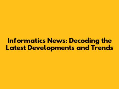 Informatics News: Latest Developments & Trends