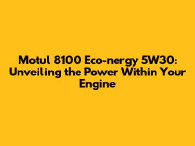 Motul 8100 Eco-nergy 5W30: The Ultimate Oil Review