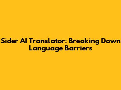 Hey guys! Ever felt lost in translation? We've all been there, staring blankly at a page of text in a language we don't understand, or struggling to communicate with someone from a different culture. But what if there was a super-smart tool that could effortlessly bridge these gaps? Enter Sider AI Translator, your new best friend for all things translation! This article will dive deep into what makes Sider AI Translator tick, how it can help you, and why it's becoming a must-have for anyone navigating our increasingly global world. Let's get started, shall we?