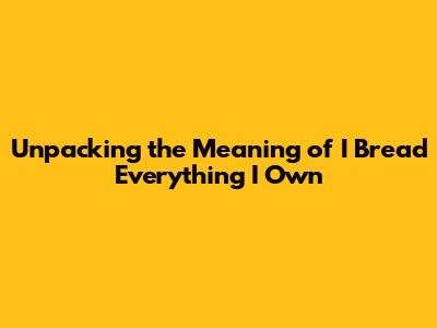 Unpacking The Meaning Of 'I Bread Everything I Own'