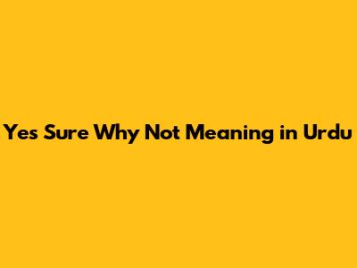 Yes Sure Why Not: Understanding The Urdu Meaning